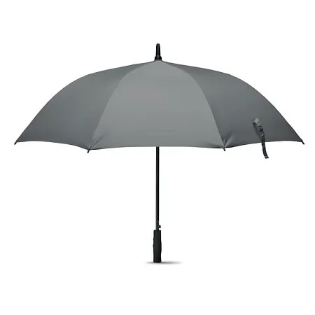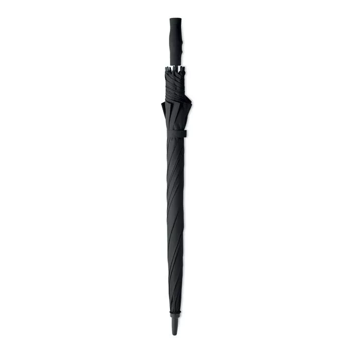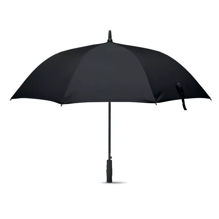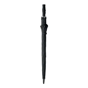 Зонт антиштормовой из эпонжа 190T со спицами и штоком из стекловолокна. Диаметр 27-дюймов, ручное открытие. Черные пластиковые наконечники и верхушка. Ручка ровная черная, изготовлена из пластика АБС с резиновым покрытием.