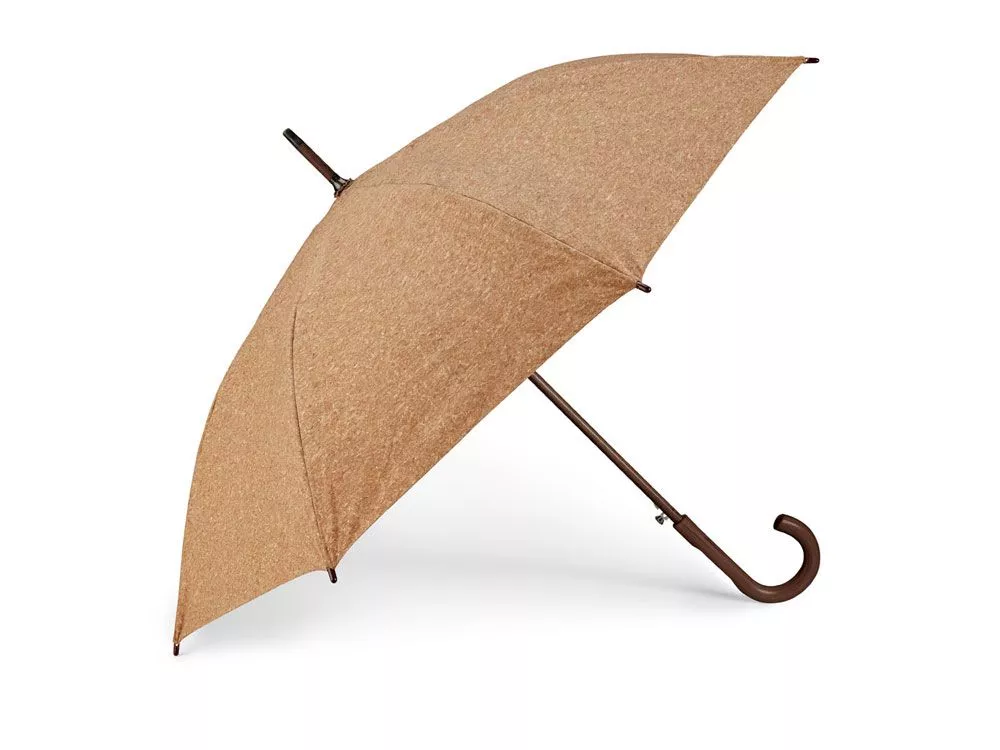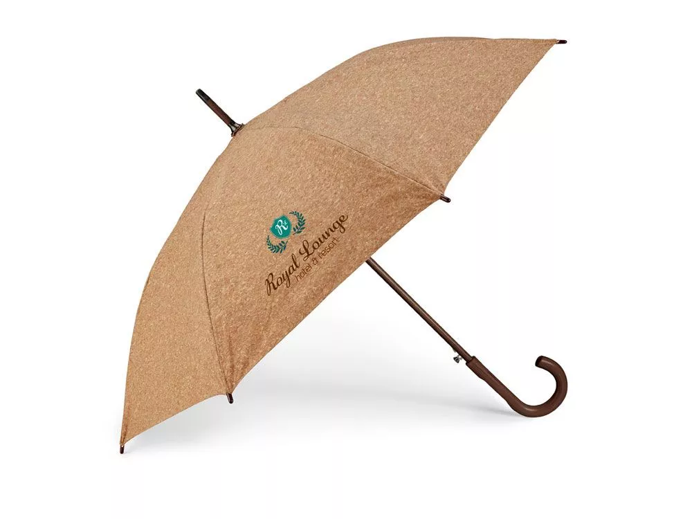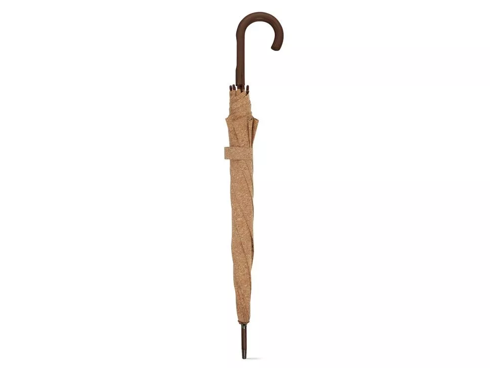 Полуавтоматический зонт-трость из натуральной пробки с деревянной ручкой. Вид нанесения, рекомендуемый поставщиком: гравировка, трансфер