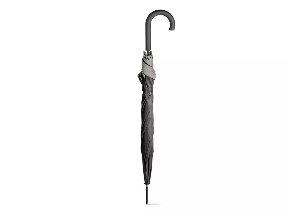 Полуавтоматический зонт-трость из полиэстера со светоотражающей окантовкой и прорезиненной ручкой. Вид нанесения, рекомендуемый поставщиком: трансфер, текстильный принтер