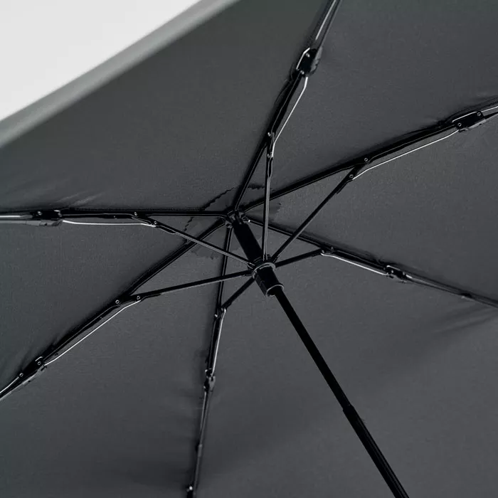 Ультралегкий 19-дюймовый ветроустойчивый зонт с ручным открытием в 3 сложения из полиэстера 30D с черным карбоновым стержнем. Черные спицы и пластиковые наконечники. Ручное закрытие. Поставляется в чехле. 100 гр.