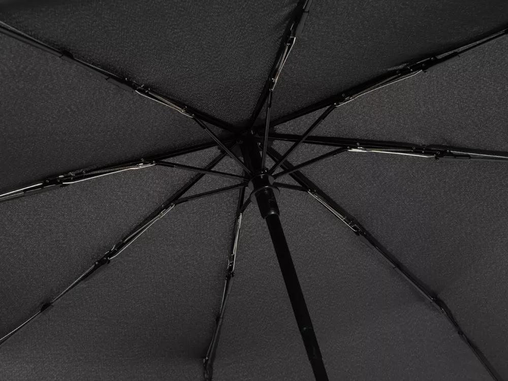 Зонт-автомат для деловых людей отличается стильным лаконичным дизайном с отделкой из искусственной кожи. Благодаря спицам из стекловолокна сможет выдержать порывы сильного ветра. На широкий фиксирующий ремешок можно нанести ваш логотип. Тиснение (Фольга) на данный товар осуществляется бесплатно. Оплачивается только настройка оборудования в размере 6200 рублей на весь тираж.