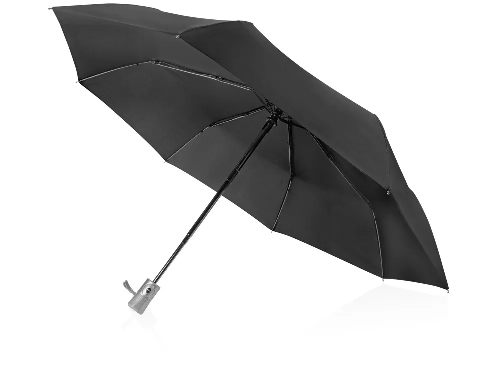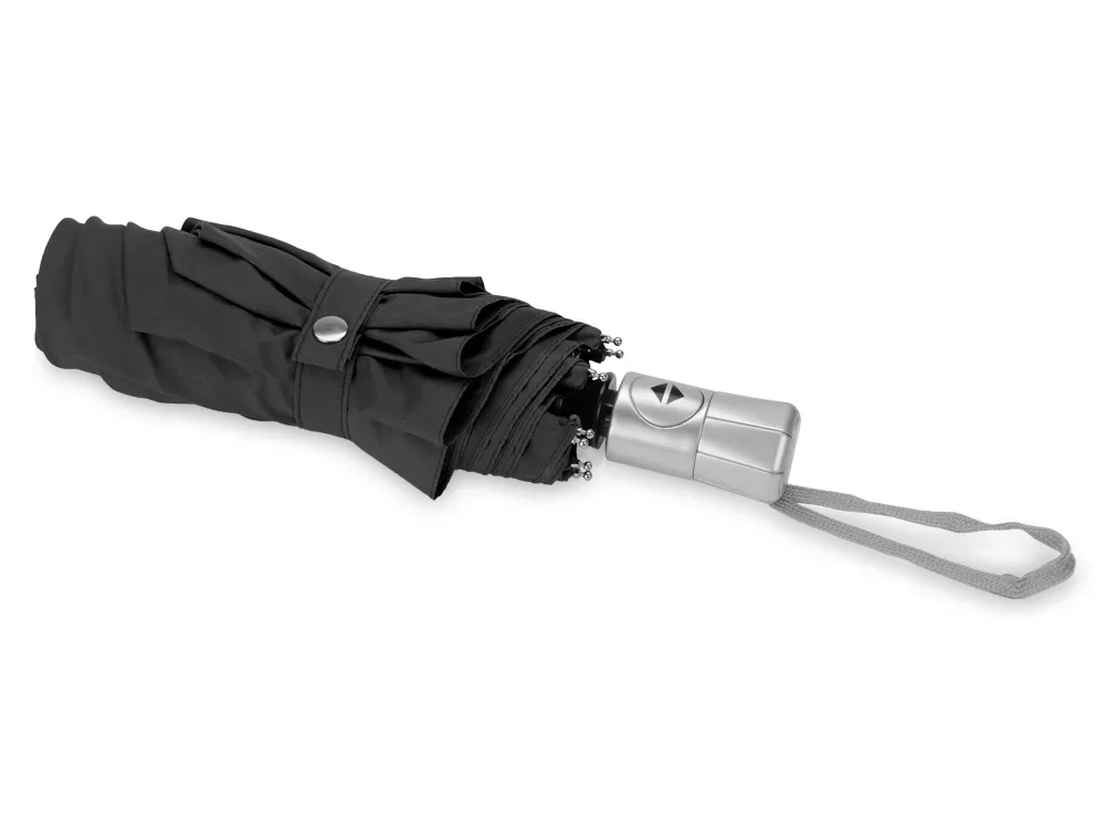 Автоматический складной зонт дополнит любой образ и защитит во время дождя. Зонт легко складывается до компактных размеров. На ткань купола можно нанести контрастную надпись или изображение.