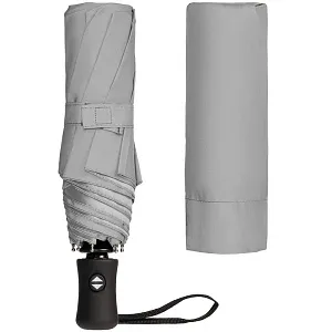 Зонт будет прекрасно работать в качестве отражателя и в сложенном виде, если закрепить его на сумке снаружи или сложить в сетчатый боковой карман рюкзака. А при дневном освещении слегка серебрящаяся ткань купола просто поднимет настроение и выделит из черной и темно-синей массы зонтов на улице.Зонт со светоотражающим куполом и пластиковой ручкой с покрытием софт-тач.