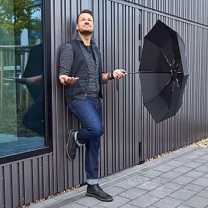 Элегантный складной зонт Steel снабжен системой WindProof, благодаря которой способен выдержать сильные порывы ветра. Купол зонта произведен из сертифицированного OEKO-TEX полиэфирного эпонжа из переработанного пластика, окрашенного по технологии waterSAVE. Новый процесс окрашивания — непосредственно в процессе производства материала — снижает потребление электричества, воды и химически активных веществ.