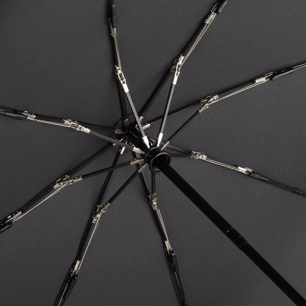 Элегантный складной зонт Steel снабжен системой WindProof, благодаря которой способен выдержать сильные порывы ветра. Купол зонта произведен из сертифицированного OEKO-TEX полиэфирного эпонжа из переработанного пластика, окрашенного по технологии waterSAVE. Новый процесс окрашивания — непосредственно в процессе производства материала — снижает потребление электричества, воды и химически активных веществ.
