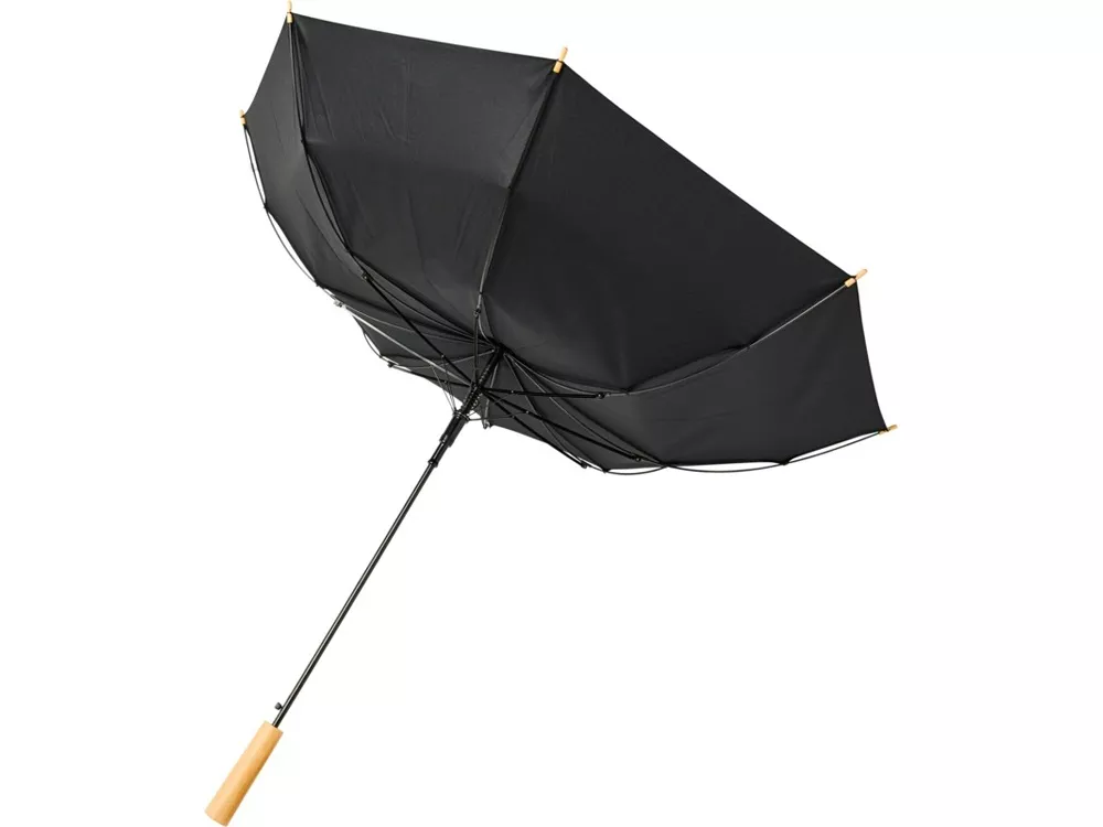Полуавтоматический зонт с куполом из эпонж полиэстера и переработанного ПЭТ-пластика. Прочный металлический стержень, высококачественная рама со спицами из стекловолокна, обеспечивающая гибкость в ветреную погоду. Сочетание деревянной ручки, кончиков спиц и купола из эпонж полиэстера и переработанного ПЭТ-пластика обеспечивает надежность зонта.