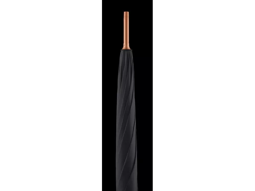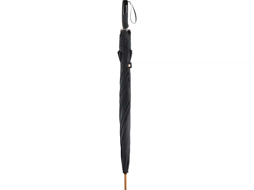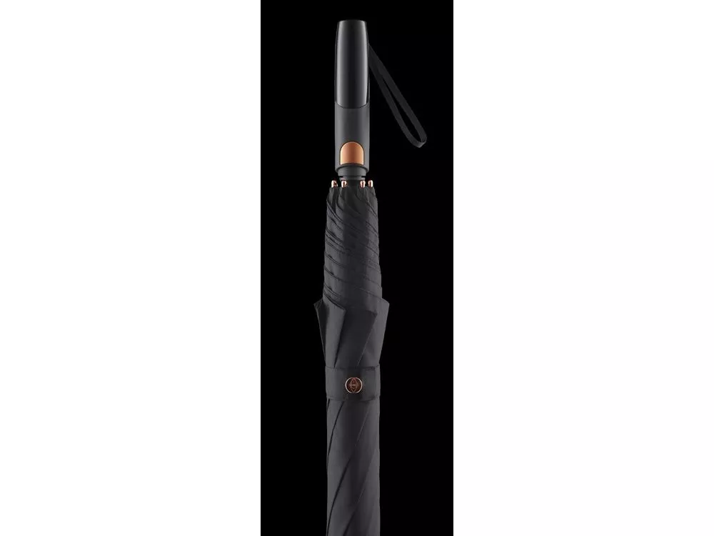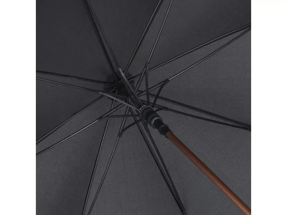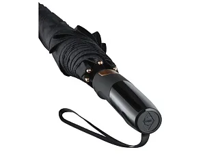 Зонт-трость с большим куполом укроет от дождя двух человек. Каркас изготовлен из особо прочного алюминия. Детали из алюминия окрашены в популярные цвета и стильно выглядят. Зонт плавно раскрывается нажатием кнопки на ручке. В ручку интегрирован эластичный шнур для большего удобства.