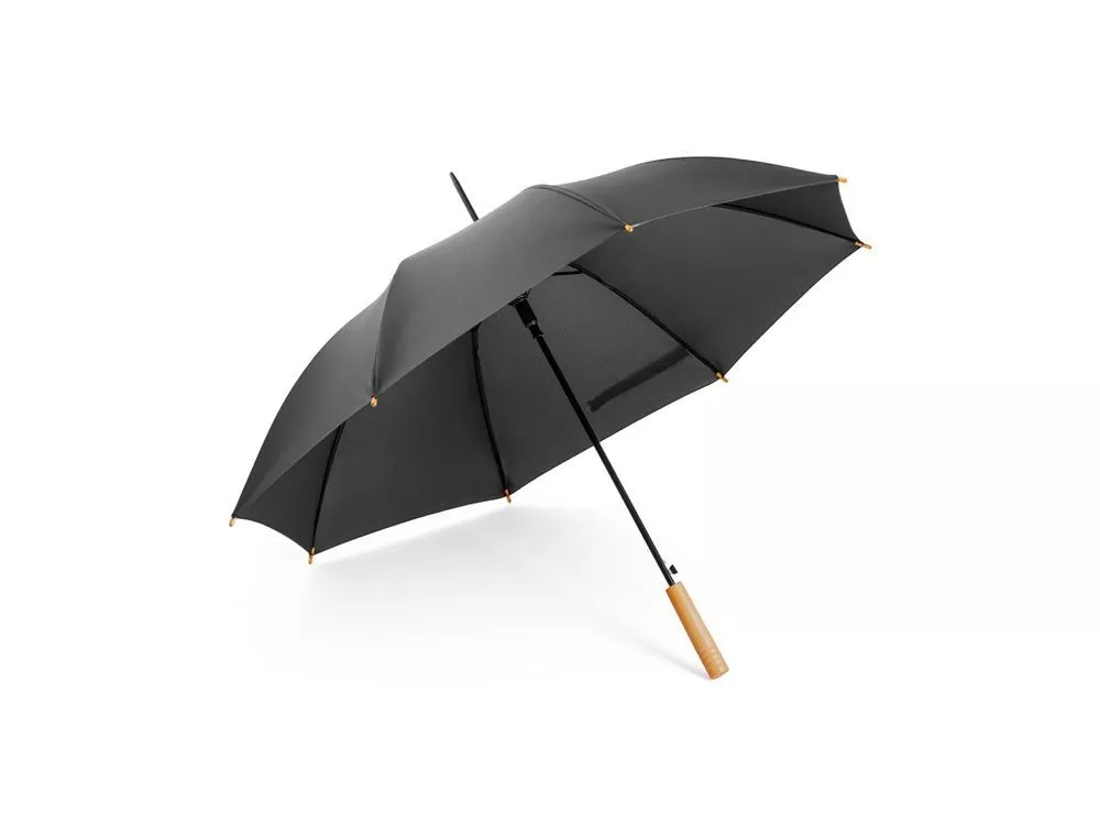 Зонт с rPET с автоматическим открытием, металлической структурой и деревянной ручкой. ø1050 x 850 мм.