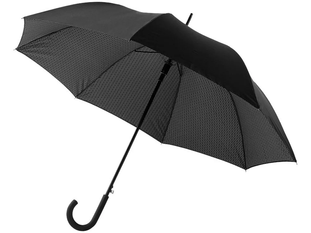 Зонт с двухслойным куполом с внутренней поверхностью в стиле ар-деко. Купол из эпонжа и чехол соответствующего цвета. Стальная трость. Элегантная прорезиненная ручка.