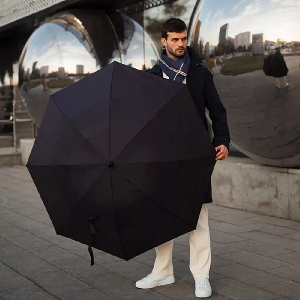 Мужской зонт гольфер Executive подойдет как для прогулок по городу, так и для деловых бизнес-встреч. Под большим двойным куполом особого покроя для предотвращения выворачивания во время порывов ветра будет комфортно даже вдвоем.