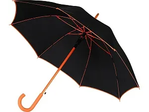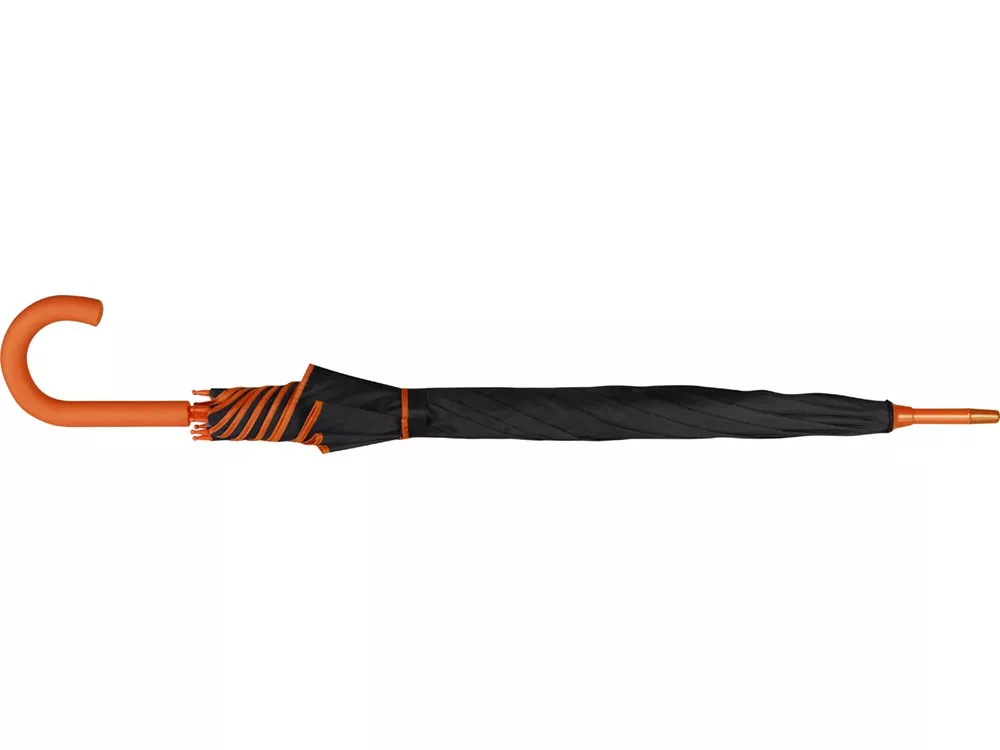 Стильный полуавтоматический зонт-трость защитит во время дождя, а в сложенном виде дополнит деловой образ. На внешнюю сторону купола зонта можно нанести любое изображение.