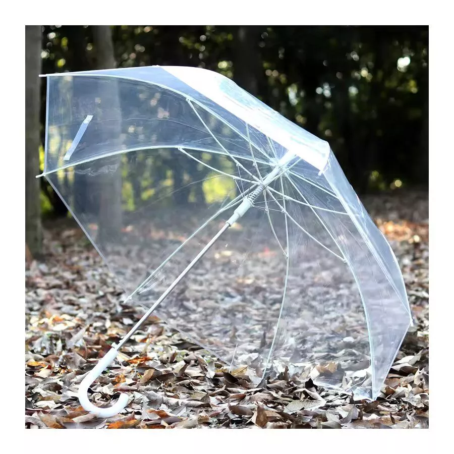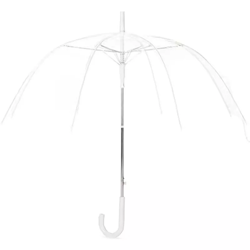 Зонт-трость с прозрачным куполом. Каркас выполнен из прочного металла, надежные спицы из стекловолокна. Поставляется без чехла.