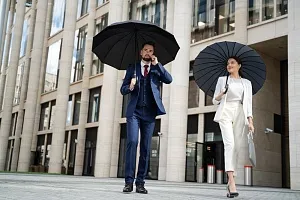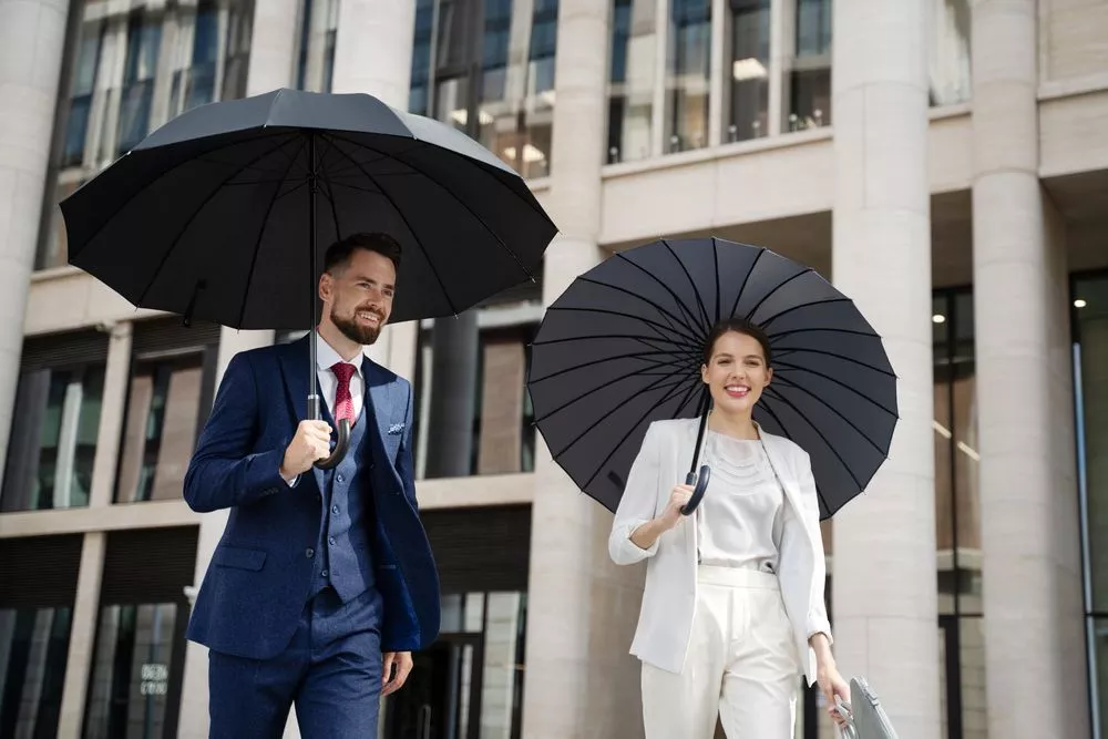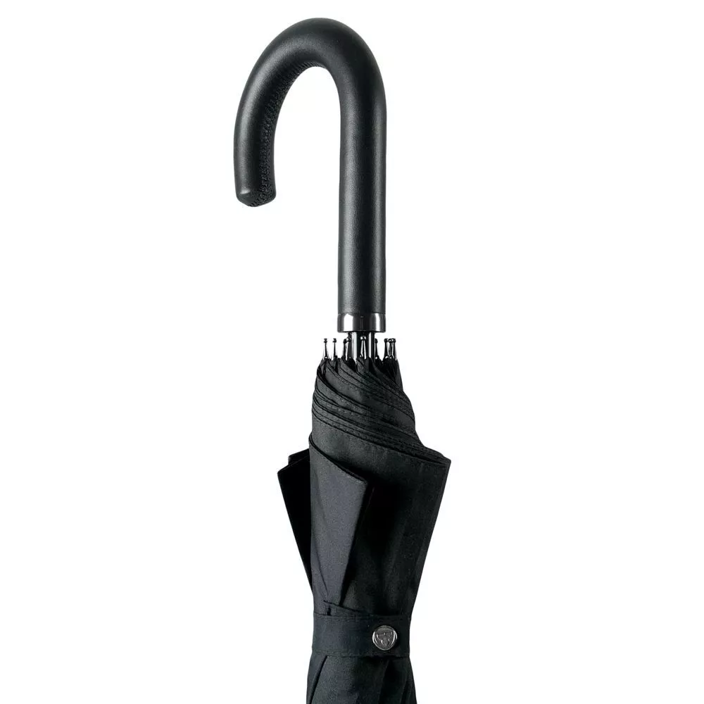Механический зонт, 12 спиц, ручка отделана натуральной кожей. Зонт поставляется в чехле и индивидуальной коробке.