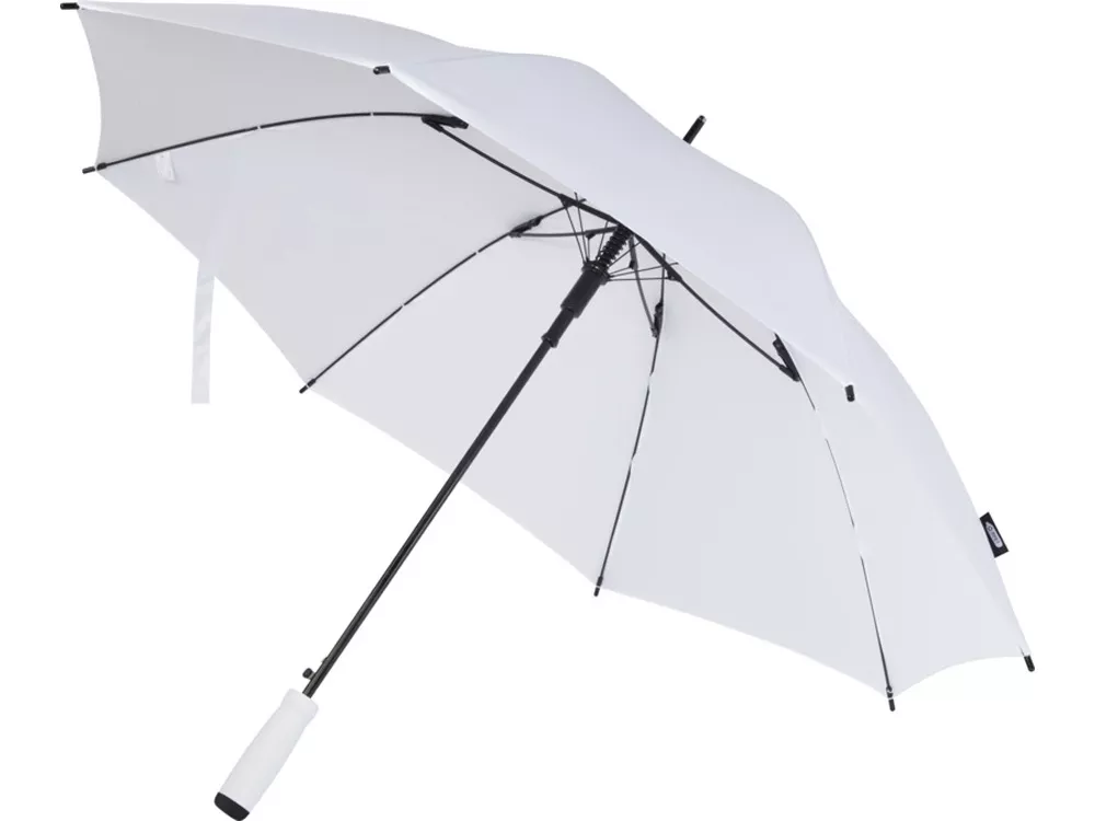 23-дюймовый зонт с куполом из эпонж полиэстера из переработанного ПЭТ-пластика. Автоматическое открытие. Имеет прочный металлический стержень, раму из стекловолокна и удобную ручку из EVA с кончиком черного цвета. Большая зона для печати на каждой панели.