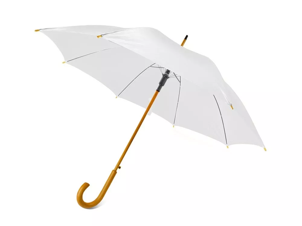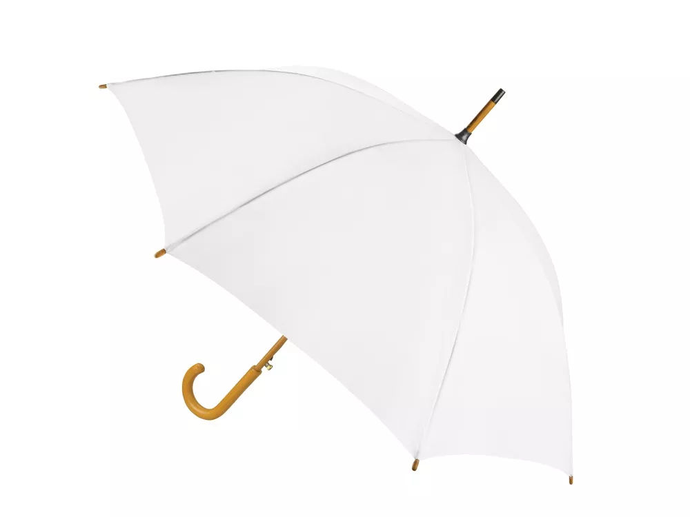 Полуавтоматический зонт-трость с деревянной ручкой выполнен из качественных материалов и устойчив к сильным порывам ветра. Яркие, сочные цвета в ассортименте. Материал позволяет нанести нужную информацию методом термотрансфера и гравировки.