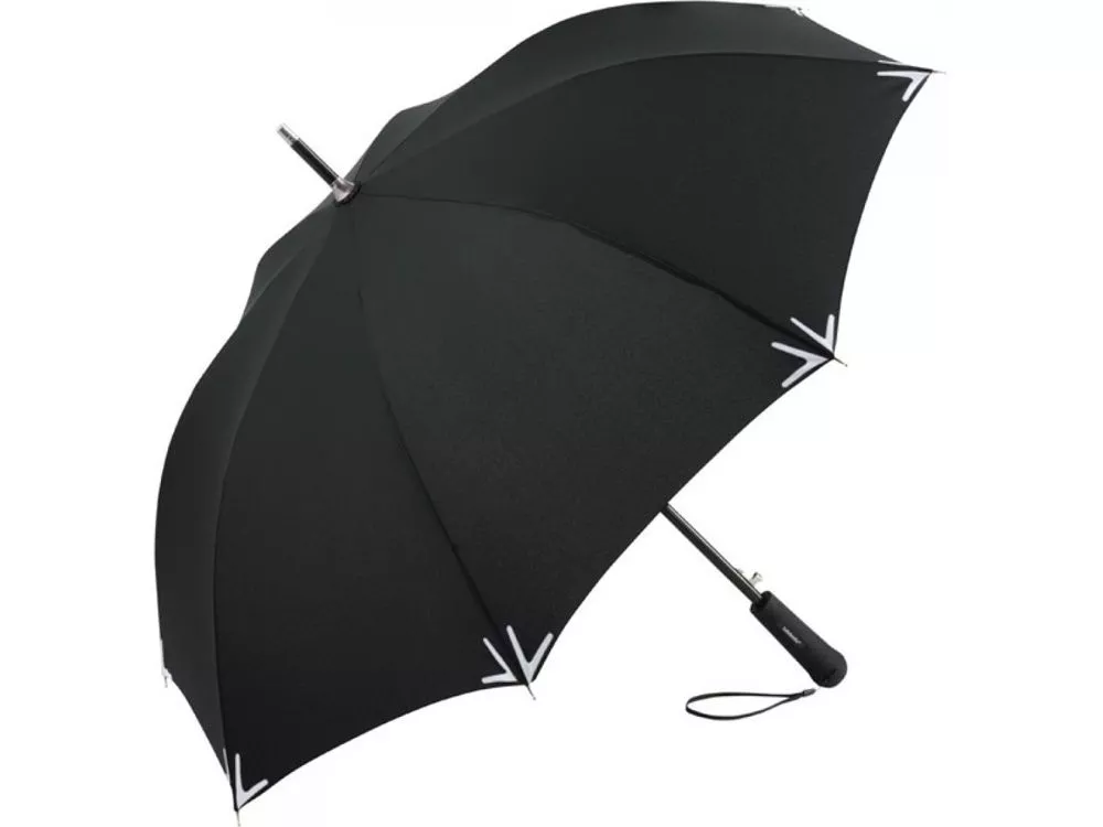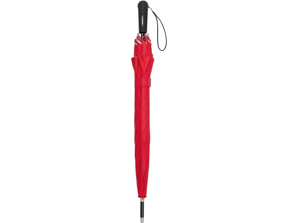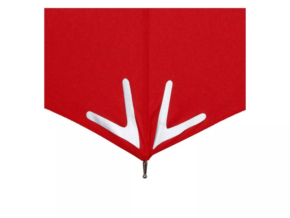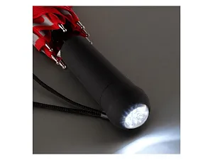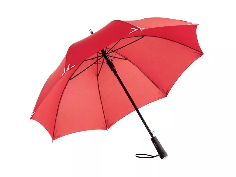 Полуавтоматический зонт-трость со светоотражающими элементами на куполе из запатентованного материала 3M™ Scotchlite™ обеспечит дополнительную защиту в темное время суток. В ручку встроен LED фонарик, который работает в двух режимах - постоянный белый свет и мерцающий красный. Батарейка в комплекте.