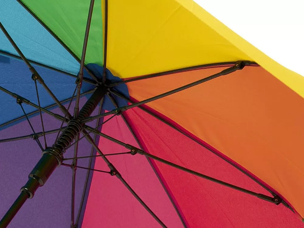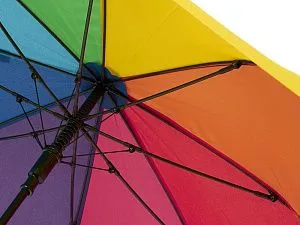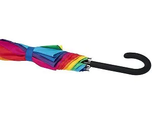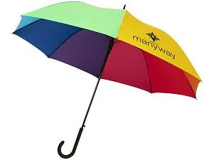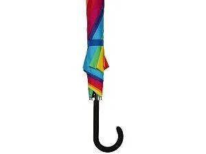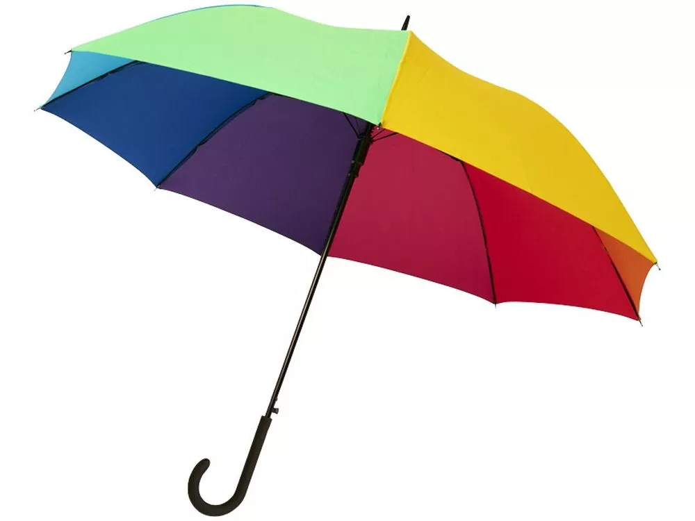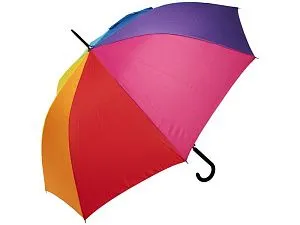 23-дюймовый ветрозащитный полуавтоматический зонт Sarah. Зонт с куполом из эпонж полиэстера, раскрашенный в цвета радуги. Прочный металлический стержень, высококачественная цельная рама из стекловолокна, обеспечивающая максимальную гибкость в ветреную погоду. Выгнутая ручка с мягким матовым покрытием, никелированные верхняя втулка и кончики спиц. Большая область для декорирования на каждой из панелей купола позволяет предложить различные креативные решения для логотипа. Эпонж полиэстер. Трафаретная печать (1 цвет (цветные изделия)) на данный товар осуществляется бесплатно. Оплачивается только настройка оборудования в размере 8700 рублей на весь тираж.