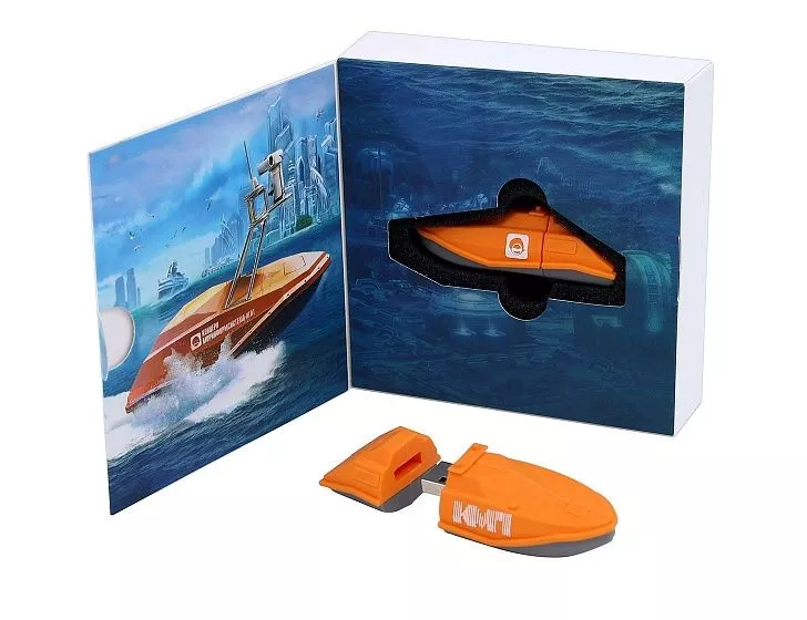 Разработан уникальный дизайн флеш-карты в форме катера, отражающий корпоративный стиль заказчика. Создана конструкция и дизайн подарочной упаковки. Корпус флеш-карты изготовлен из ПВХ. Производство и доставка готовой продукции осуществлялась из Китая.