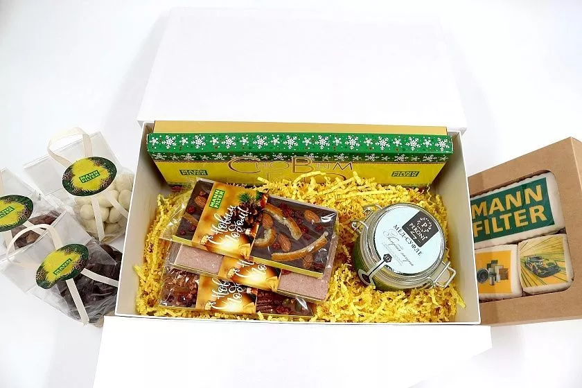 Изготовить подарочные наборы к Новому Году для дилеров продукции Mann Filter
