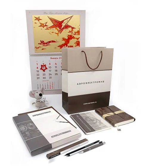 Создать комплект фирменных сувениров, отражающий стиль и ценности Заказчика.